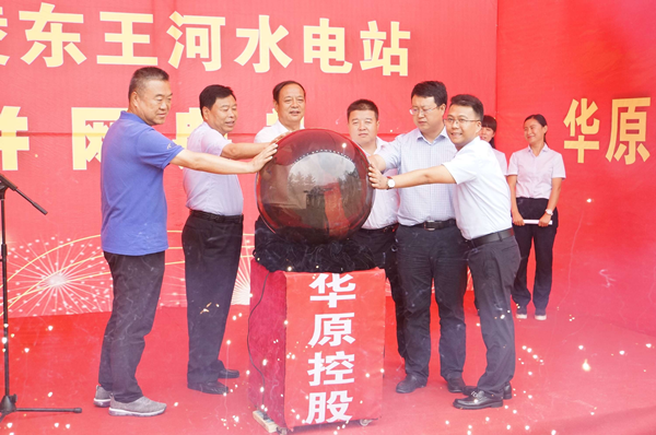 7月28日上午11點,華原控股有限公司在黃陵東王河水電站舉行正式并網(wǎng)發(fā)電慶典儀式。慶典現(xiàn)場,黃陵縣縣委常委、政法委白建平書記,黃陵縣水務(wù)局張峰局長,黃陵縣田莊鎮(zhèn)梁博黨委書記,黃陵縣田莊鎮(zhèn)趙文杰鎮(zhèn)長,華原控股有限公司董事長,華原控股有限公司魏廣林總經(jīng)理共同啟動水晶球,共同見證東王河水電站并網(wǎng)發(fā)電。