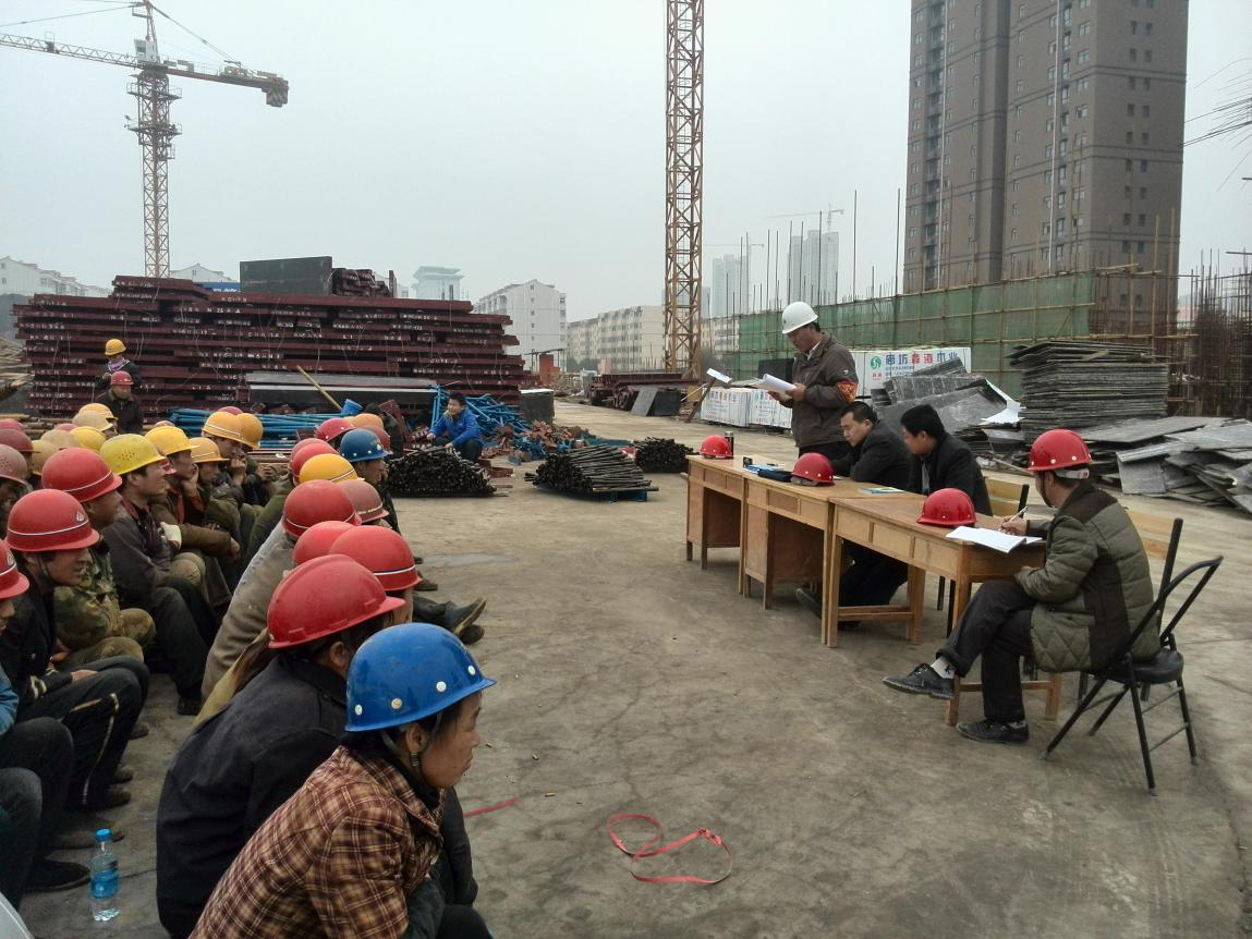 在此次三級安全教育大會上及各個班組的全部施工人員面前,工程部周戰(zhàn)勝部長宣布了會議流程,項目總工韋建業(yè)、項目安全員韓恒福、勞務公司代表羅傳久相繼做了發(fā)言,對工人講解了施工過程中的安全操作規(guī)程及需關鍵注意點,從自身經(jīng)驗出發(fā),講述了自身經(jīng)歷的安全事故,以實例來提醒工人要時刻緊抓安全不放松,切不可有一絲馬虎。同時項目經(jīng)理馮中樓也做了重要發(fā)言,他提到:工地安全無小事,任何一個看似簡單的小問題都有可能引發(fā)大的事故,項目各管理人員要防微杜漸,發(fā)現(xiàn)任何問題及時處理,并從項目管理角度,將安全管理責任落實到個人。