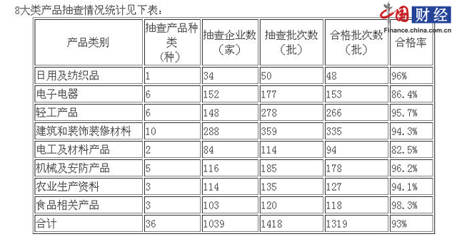 中國網(wǎng)財(cái)經(jīng)8月1日訊 陜西省質(zhì)量技術(shù)監(jiān)督局官網(wǎng)昨日發(fā)布消息,該局2017年上半年組織開展了日用及紡織品、電子電器、輕工產(chǎn)品、建筑和裝飾裝修材料、機(jī)械及安防、電工及材料、農(nóng)業(yè)生產(chǎn)資料、食品相關(guān)產(chǎn)品等8大類36種產(chǎn)品質(zhì)量監(jiān)督抽查。共抽查了1039家生產(chǎn)和經(jīng)銷企業(yè)的1418批次樣品,經(jīng)檢驗(yàn),合格企業(yè)946家,合格樣品1319批次,產(chǎn)品總體抽查合格率為93%。